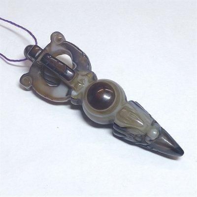 ・チベットめのう(天眼石)を加工して作られたブルパ(独鈷杵・金剛杭)です。
